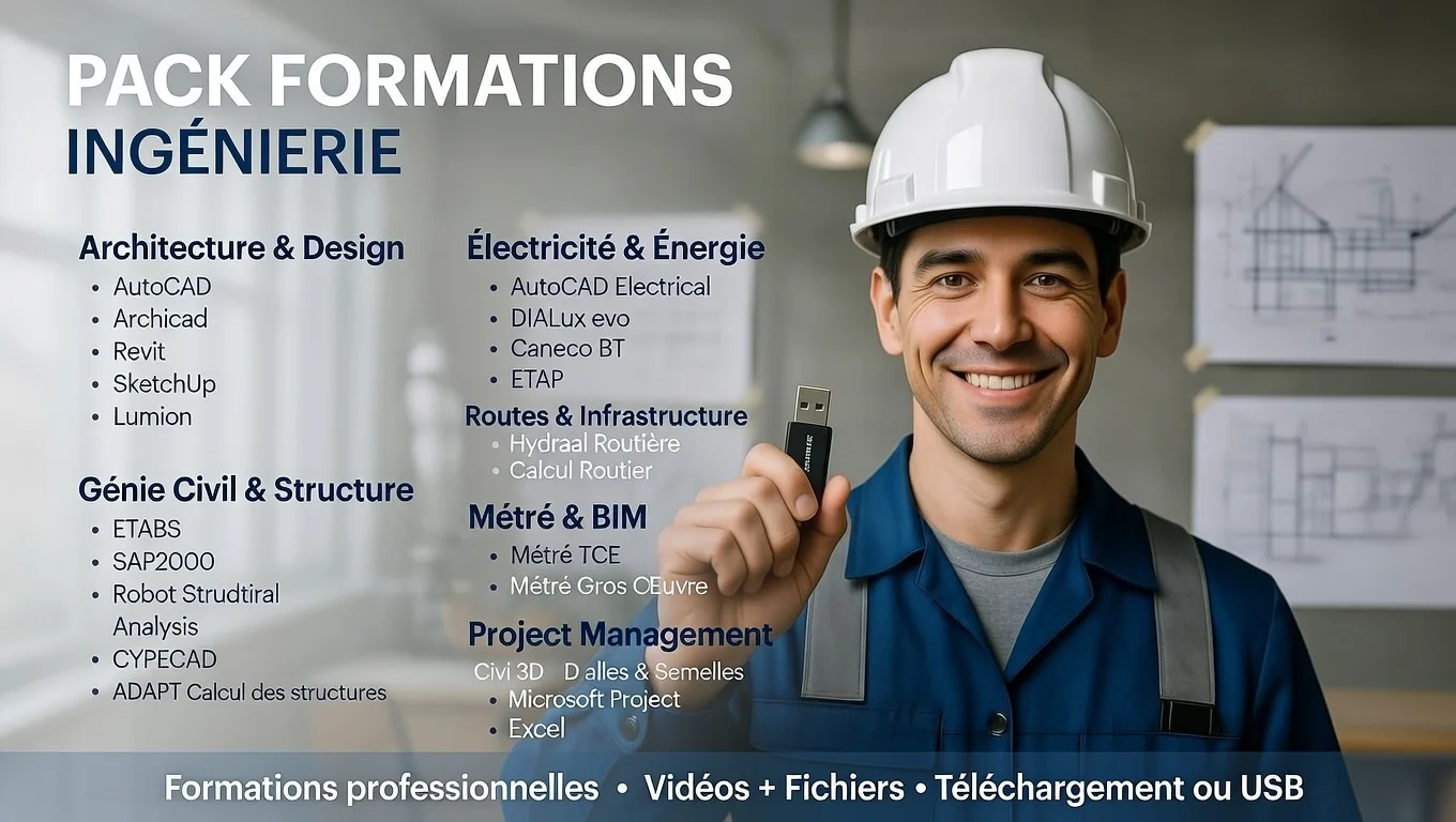 **🏗️ باقة Formation Engineering Professionnelle + Logiciels USB Gratuits | 399 DH فقط!**